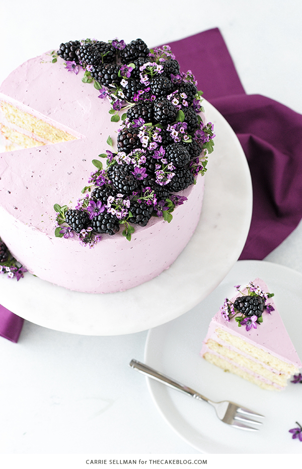 The end result is not overly tart, nor overly sweet, just delicate blackberry that’s mild and easy to eat. If you really want to amp up the blackberry flavor, slice some berries in half and add them between your cake layers, to get that fresh berry punch. The choice to go big or stay mild is up to you. Either way, this one is definitely worth a go.