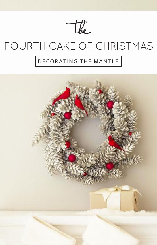 We’re wrapping up the week with cake number four. Our fourth cake celebrates the focal point of our living rooms and the place where we draw our family close. The perch that we happily decorate year after year, adding a touch of coziness to our homes and cheer to our hearts. From stockings and vases to a touch of snow, we style it up pretty and watch it glow. The Fourth Cake of Christmas was inspired by…. the fireplace mantle!