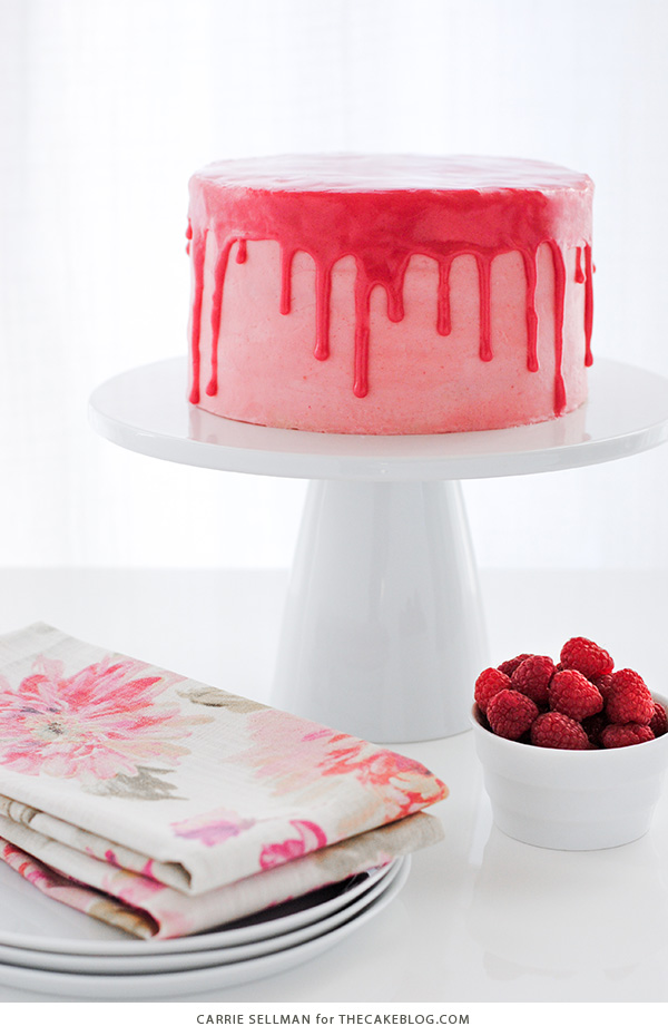 Raspberry Champagne Cake – champagne infused cake with raspberry champagne buttercream, raspberry drip glaze, fresh raspberries and whipped cream. A new layer cake recipe perfect for Valentine’s Day!